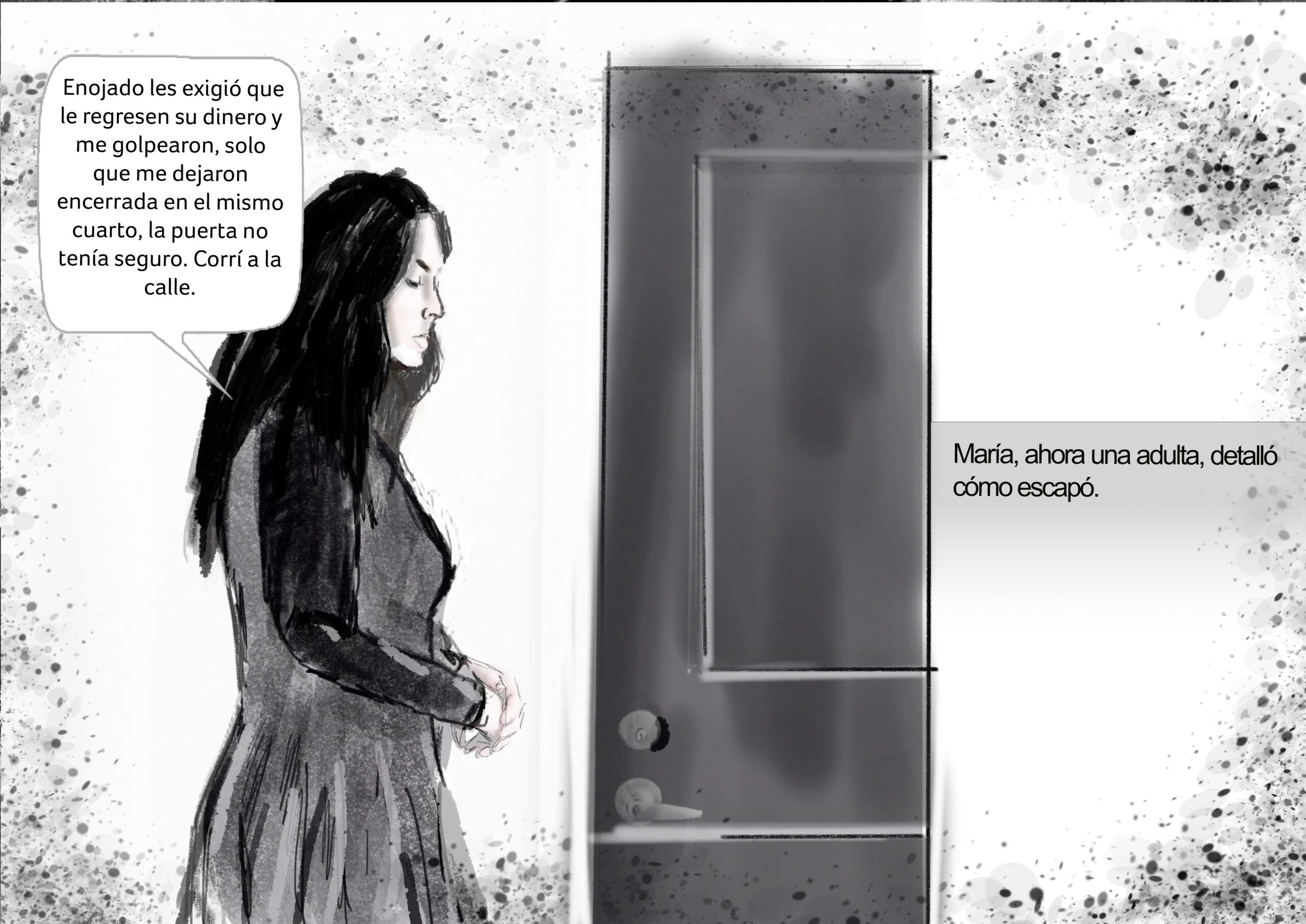 Entonces, María, con apenas 11 años, soportó dos meses de golpes y violaciones de hasta más de 10 hombres por día. Harta y con miedo decidió escapar.