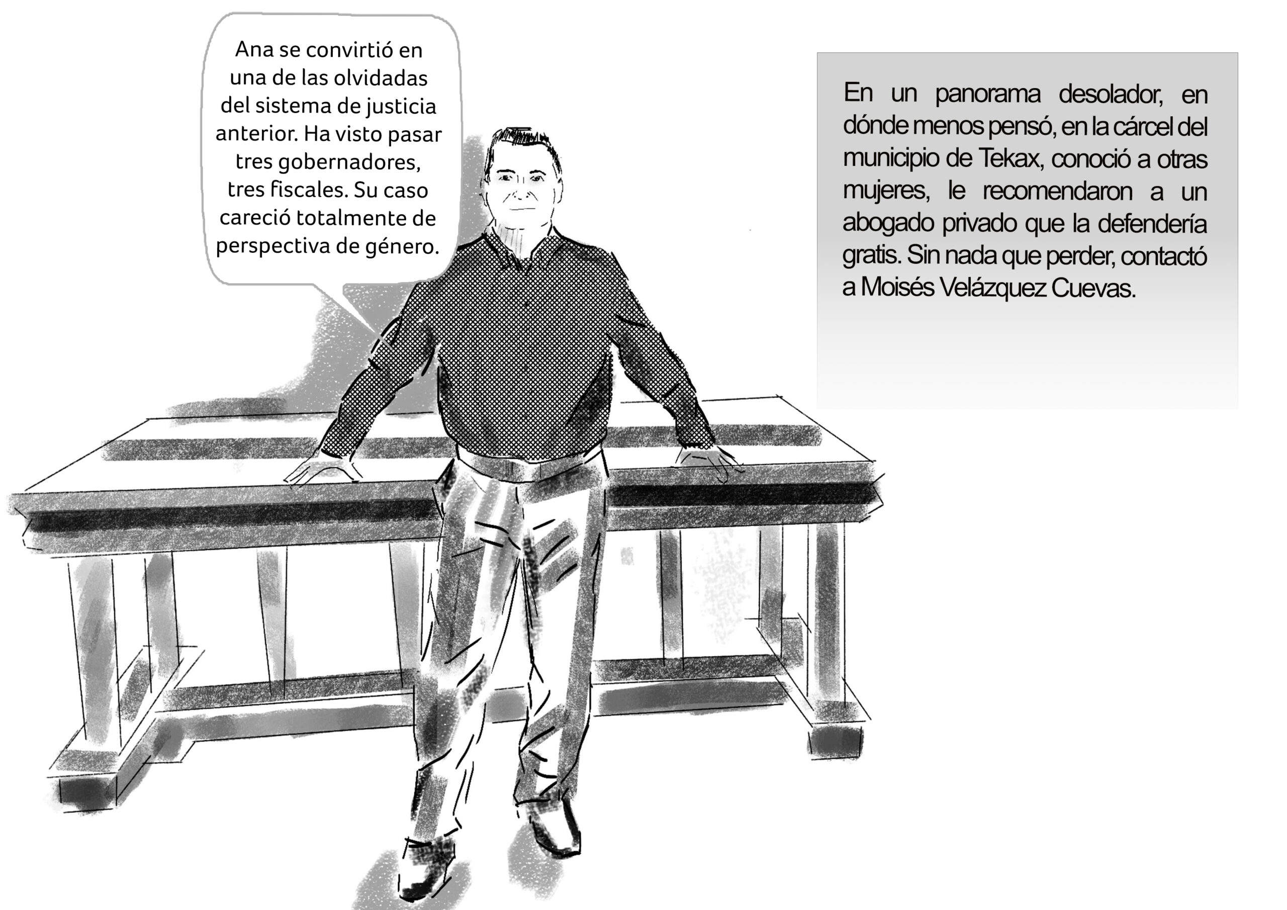 En la cárcel, además, conoció a otras mujeres. Algunas encarceladas por cometer legítima defensa. En pocas palabras, encarceladas por luchar para no ser víctimas de feminicidio. Ellas le contaron de un abogado que acompañaba su caso. Ana, con desconfianza, pero ya sin nada que perder, lo contactó.