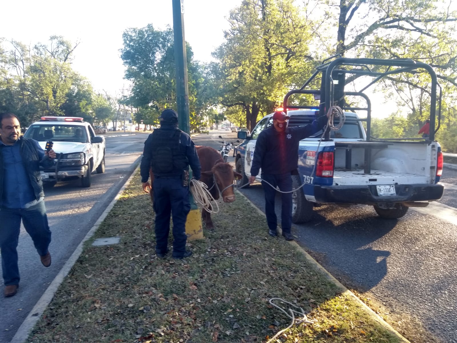 Después avanzó por la calle Rosales y el Bulevar Praxedis Balboa para finalmente, ya con la presencia de elementos de Protección Civil, ser lazado por un agente de la Policía Montada y amarrado a una luminaria que se encuentra sobre el camellón frente a la plaza del 12 Bulevar Praxedis Balboa.