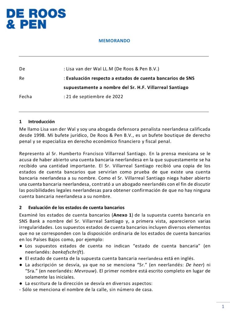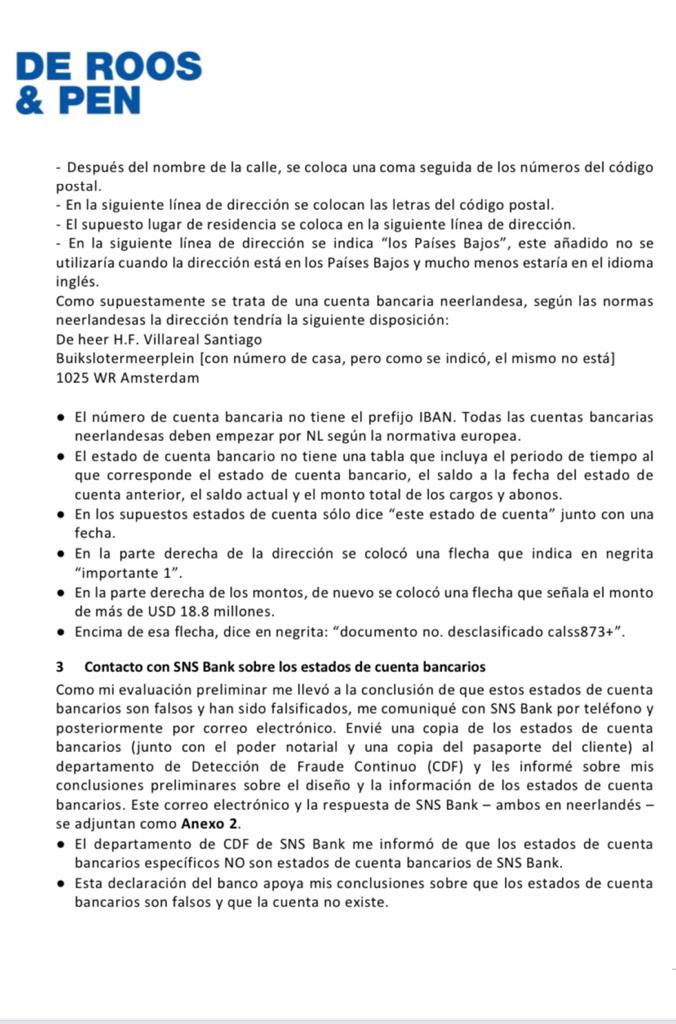 Villarreal Anaya explicó que se hizo un análisis con los estados de cuenta que fueron mostrados en la pieza periodística, confirmando que son falsos y no los reconoce la institución bancaria.