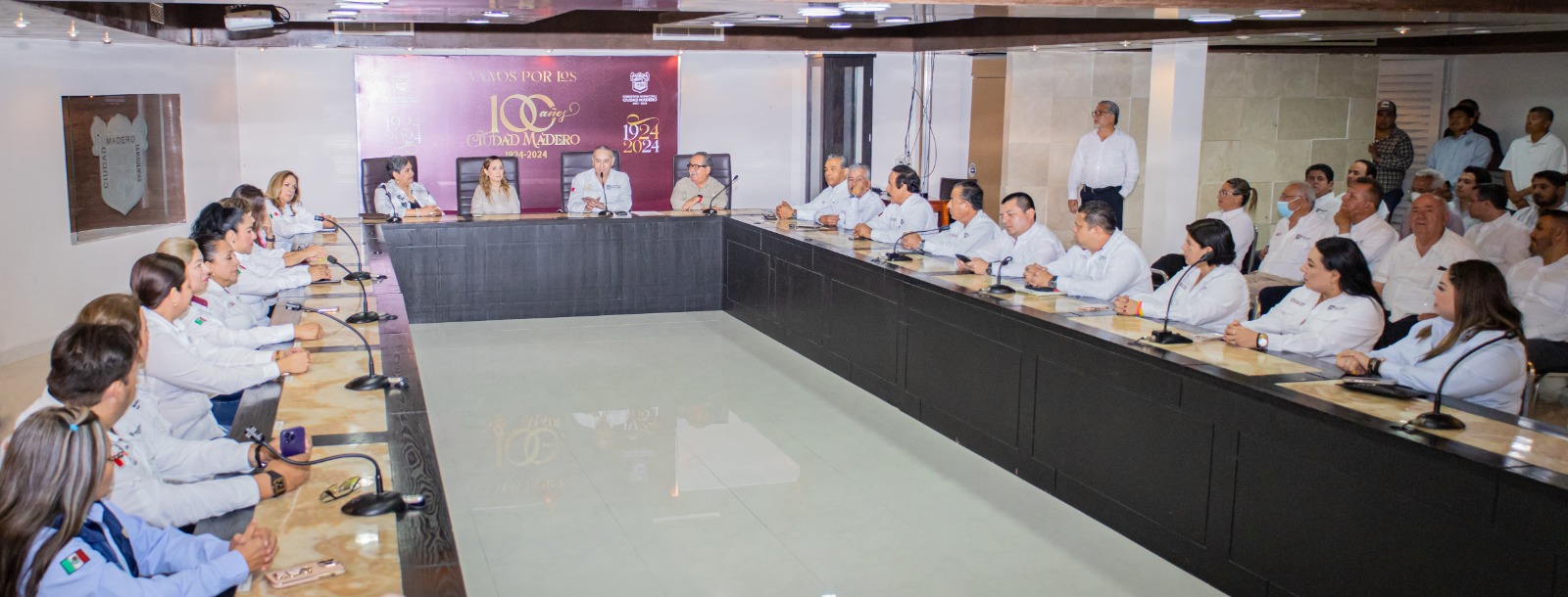 Así lo anunció el munícipe en Sala de Cabildo, acompañado por su esposa la Sra. Ana Cristina Organista de Oseguera, presidenta del Sistema DIF Madero; el secretario de Ayuntamiento, Juan Antonio Ortega Juárez; la cronista Carolina Infante Pacheco, así como síndicos, regidores y directores municipales.