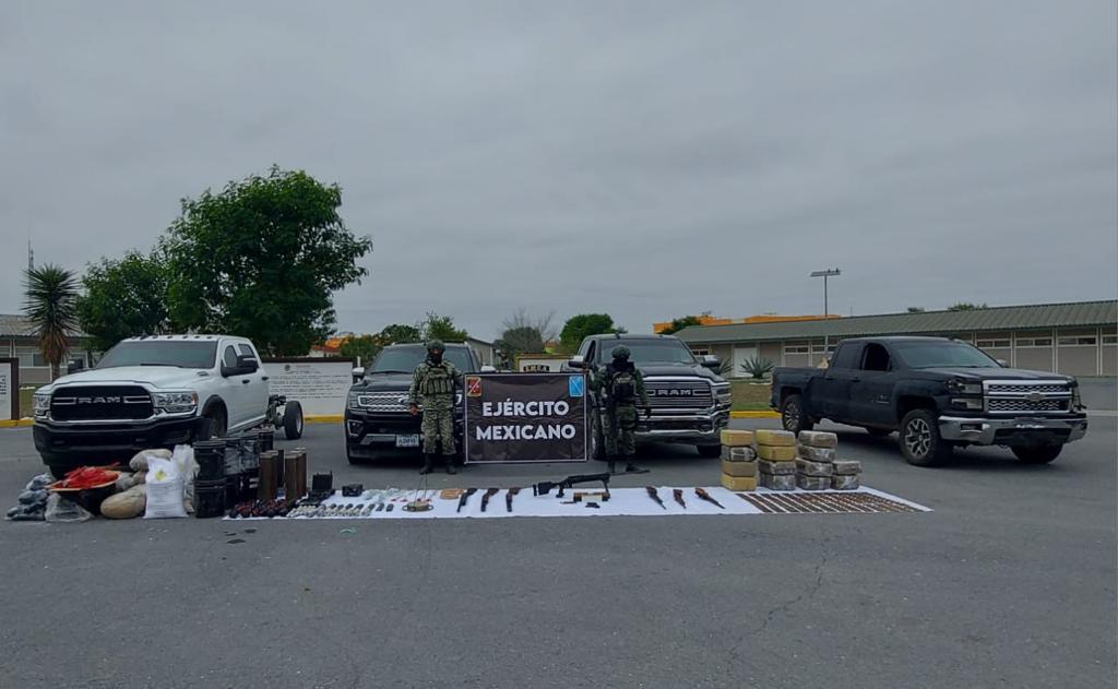 NUEVO LAREDO, Tam.- Elementos del Ejército Mexicano aseguraron en una brecha de Nueva Ciudad Guerrero, ocho vehículos, cinco de los cuales contaban con blindaje artesanal, así como armas, cartuchos y artefactos explosivos en un narco campamento.