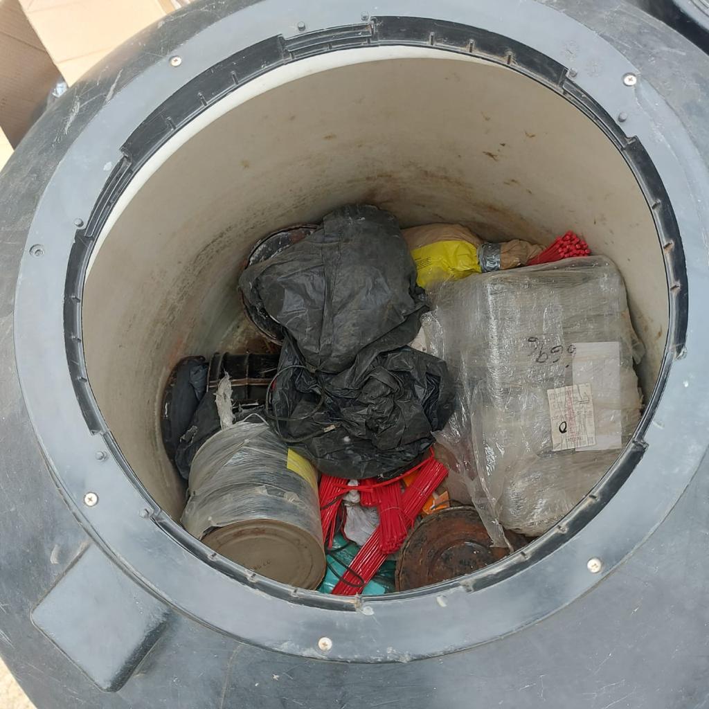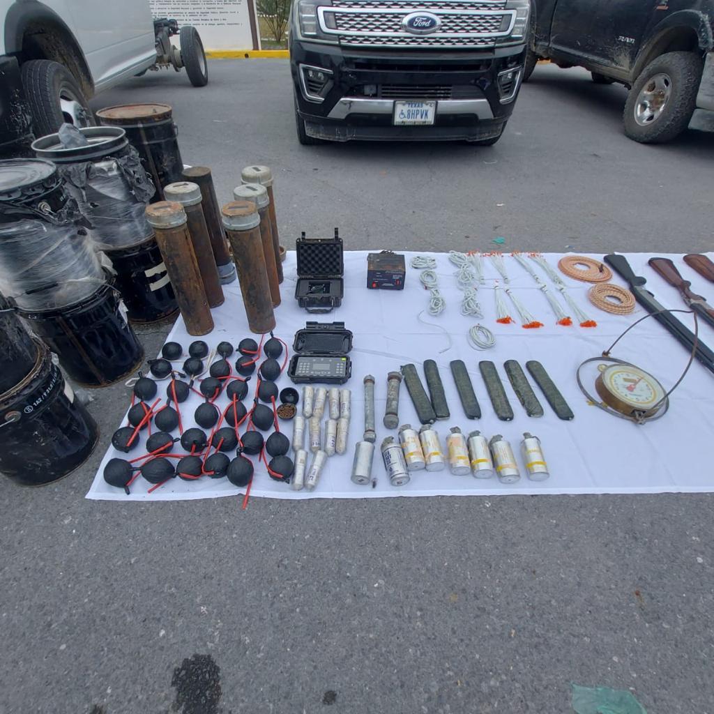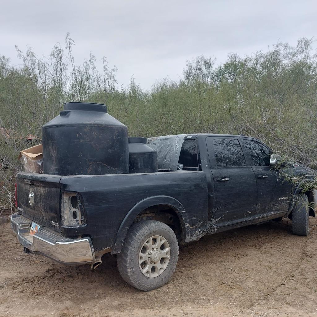 En una de las camionetas se encontraban dos tinacos para el agua y dentro de ellos localizaron materiales para elaborar artefactos explosivos y sus iniciadores.