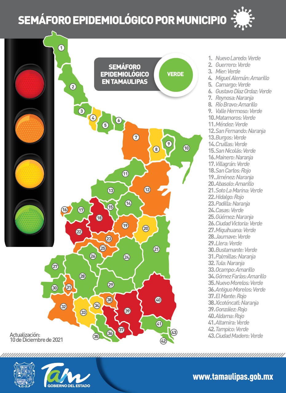VICTORIA, Tam.- Las medidas de bioseguridad activadas por el gobierno de Francisco García Cabeza de Vaca han permitido mantener a Tamaulipas en semáforo de riesgo epidemiológico color verde y escalar las diferentes fases de la nueva normalidad, sin embargo es fundamental no bajar la guardia para evitar un brote de COVID-19 que pudiera derivar en una cuarta ola de contagios ante la proximidad del periodo vacacional decembrino.