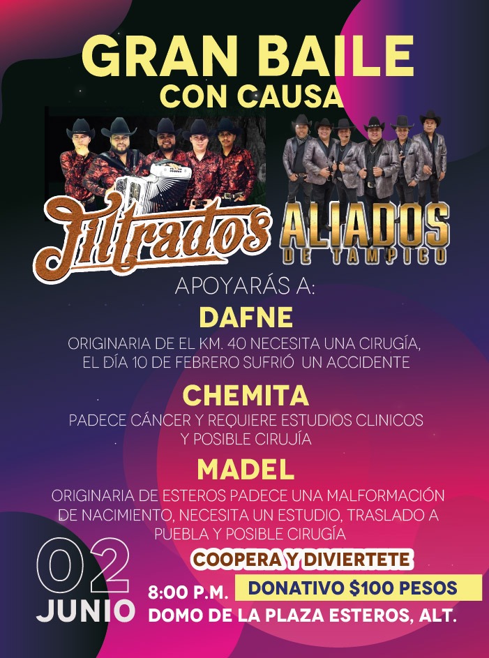 “Los grupos vamos completamente gratis, ninguna de las cinco agrupaciones vamos cobrando, su servidor es Aliados de Tampico, el grupo Norteño la Vieja Escuela, Grupo Filtrados, va un grupo tropical que se llama Scary Junior y va otro grupo tropical que se llama la Pachanga Show, entonces, nosotros los grupos aquí en la zona siempre nos hemos apoyado cuando un compañero requiere”, citó.