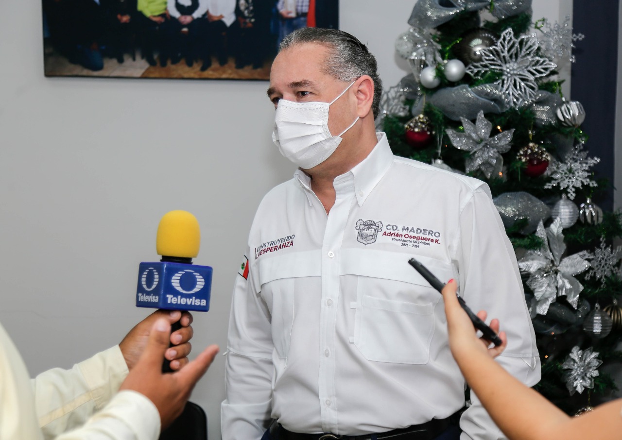 CIUDAD MADERO, Tam.- En el mes de diciembre donde impera la paz, la tranquilidad y unión en los hogares, pidió el alcalde Adrián Oseguera Kernion, no bajar la guardia en las fechas decembrinas para evitar contagios por Covid-19.