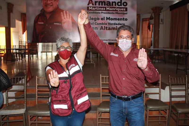Por su parte Xóchitl Rangel Vega expresó “decidimos unirnos al proyecto que coincide con la ideología de la mejor opción que es Armando Martínez, somos coherentes con lo que decimos y hacemos, el partido verde va en coalición con Morena a diputación federal y entonces vamos en Altamira con Morena-PT”.