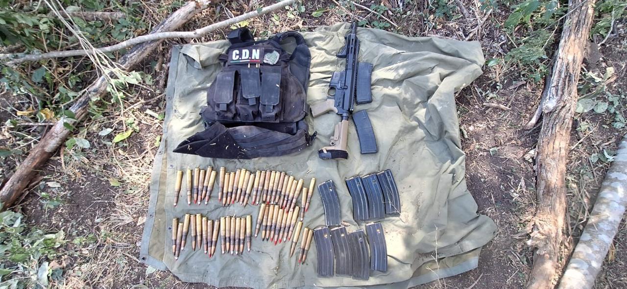 Los elementos militares que llevaron a cabo patrullaje de seguridad, lograron asegurar además 95 cargadores; 11 chalecos tácticos; 12 placas balísticas y 2,779 cartuchos,