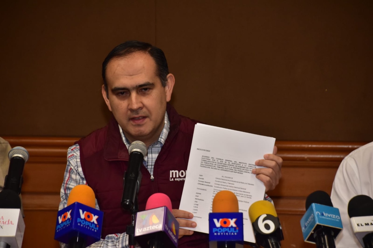 Al encabezar la rueda de prensa semanal, el delegado del Movimiento de Regeneración Nacional (Morena), denunció lo que llamó contubernio entre el INE y el gobierno estatal, luego de que se permitió que el mandatario diera difusión a través de mensajes en diferentes municipios, de su sexto y último informe de gobierno.