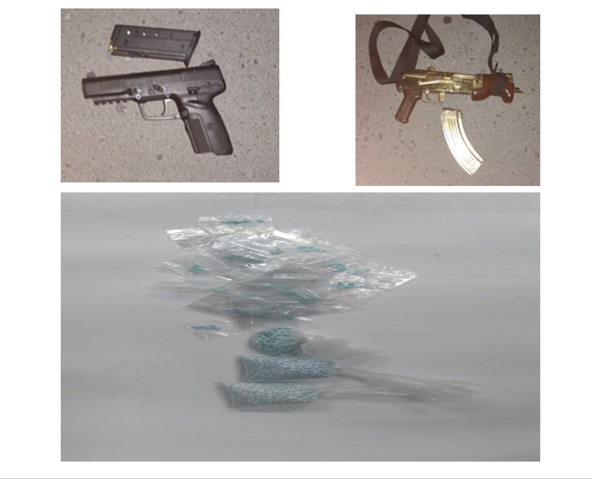 El líder delincuencial vestía playera blanca, pants gris y tenis blancos, le aseguraron un arma larga, un arma corta, dos cargadores, 27 cartuchos y 2 mil pastillas de fentanilo.