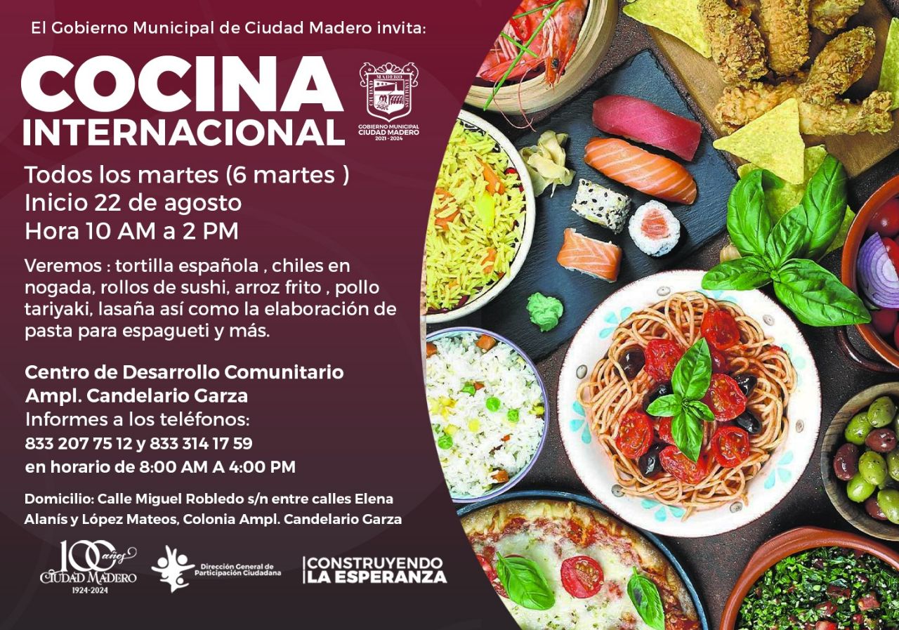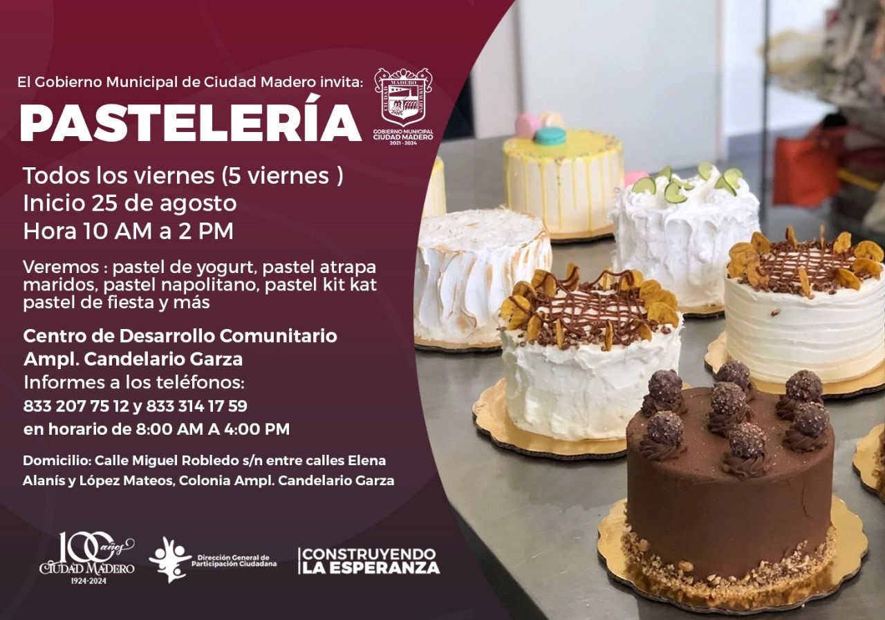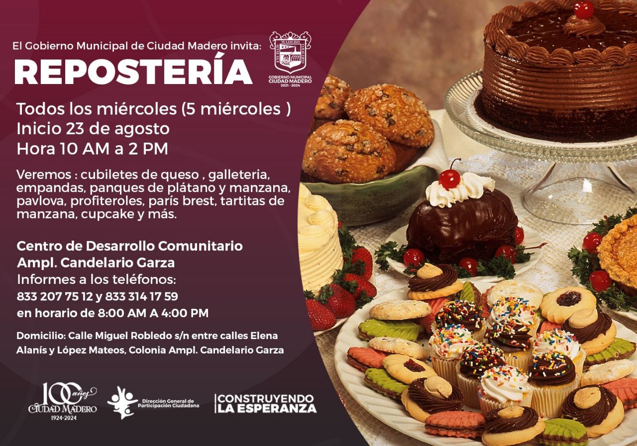 CIUDAD MADERO, Tam.-El Gobierno de Ciudad Madero pone en marcha nuevos cursos de repostería, pastelería y cocina internacional, en el Centro de Desarrollo Comunitario Ampliación Candelario Garza, informó Araceli Saldierna Trujillo, directora de Participación Ciudadana.