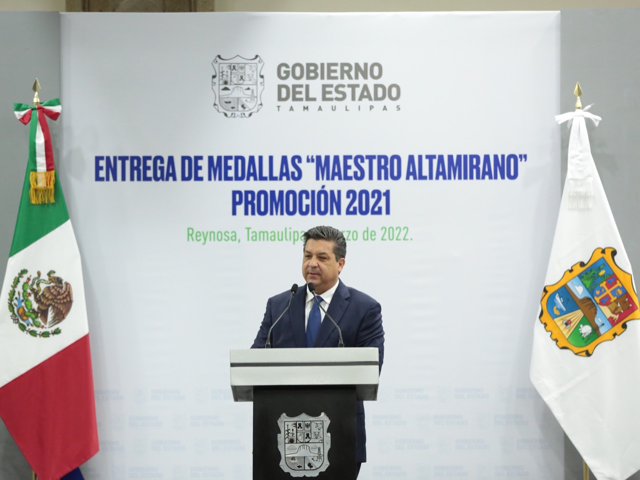 “Quiero destacar a cada uno de ustedes, los galardonados con la medalla Maestro Manuel Altamirano, porque 40 años de su servicio han formado a muchas generaciones de tamaulipecos de bien, que han hecho mucho por nuestro Estado”, dijo el Gobernador de Tamaulipas.