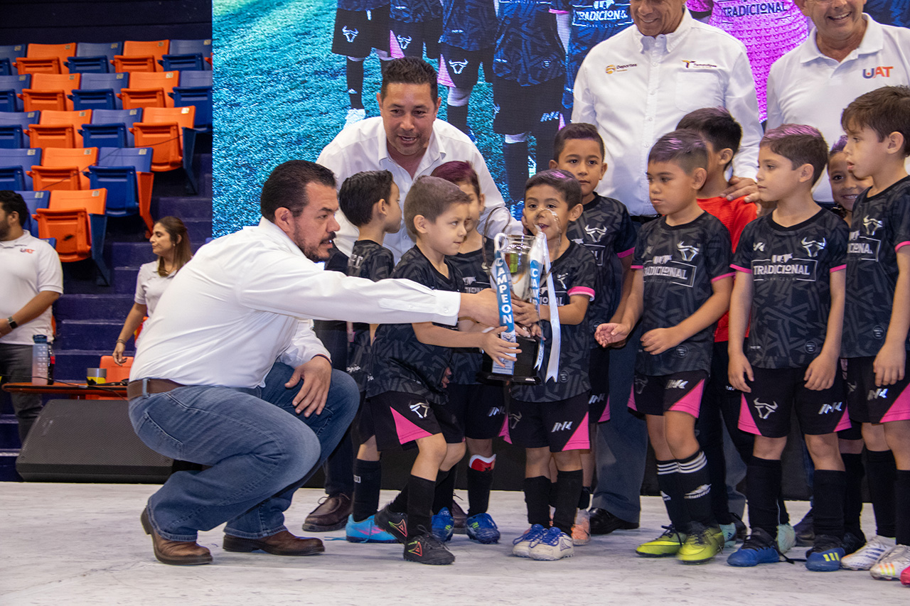 En un colorido marco de fiesta deportiva y familiar, el rector Guillermo Mendoza Cavazos entregó los trofeos a los equipos ganadores de los torneos de liga y copa; además hizo entrega de trofeos a los mejores porteros y goleadores de las diferentes categorías que conforman el torneo.