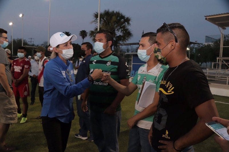 VICTORIA, Tam.- La candidata del Partido Acción Nacional a la Alcaldía de Victoria, Pilar Gómez Leal puso en marcha una edición más del Torneo de Barrios de Fútbol, reconociendo que el deporte es una herramienta eficaz y parte integral en la formación de los niños y jóvenes.