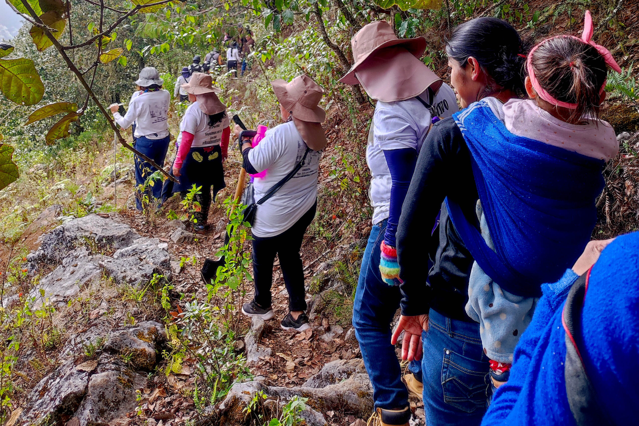 Familiares de Alexis durante la búsqueda realizada en febrero de este año en la comunidad de Ixhuapa. (Alexia Martínez)