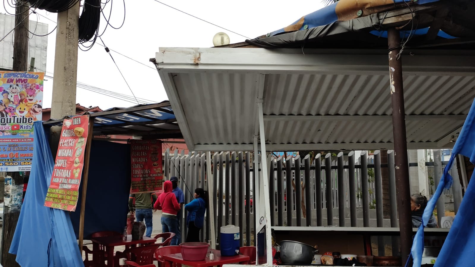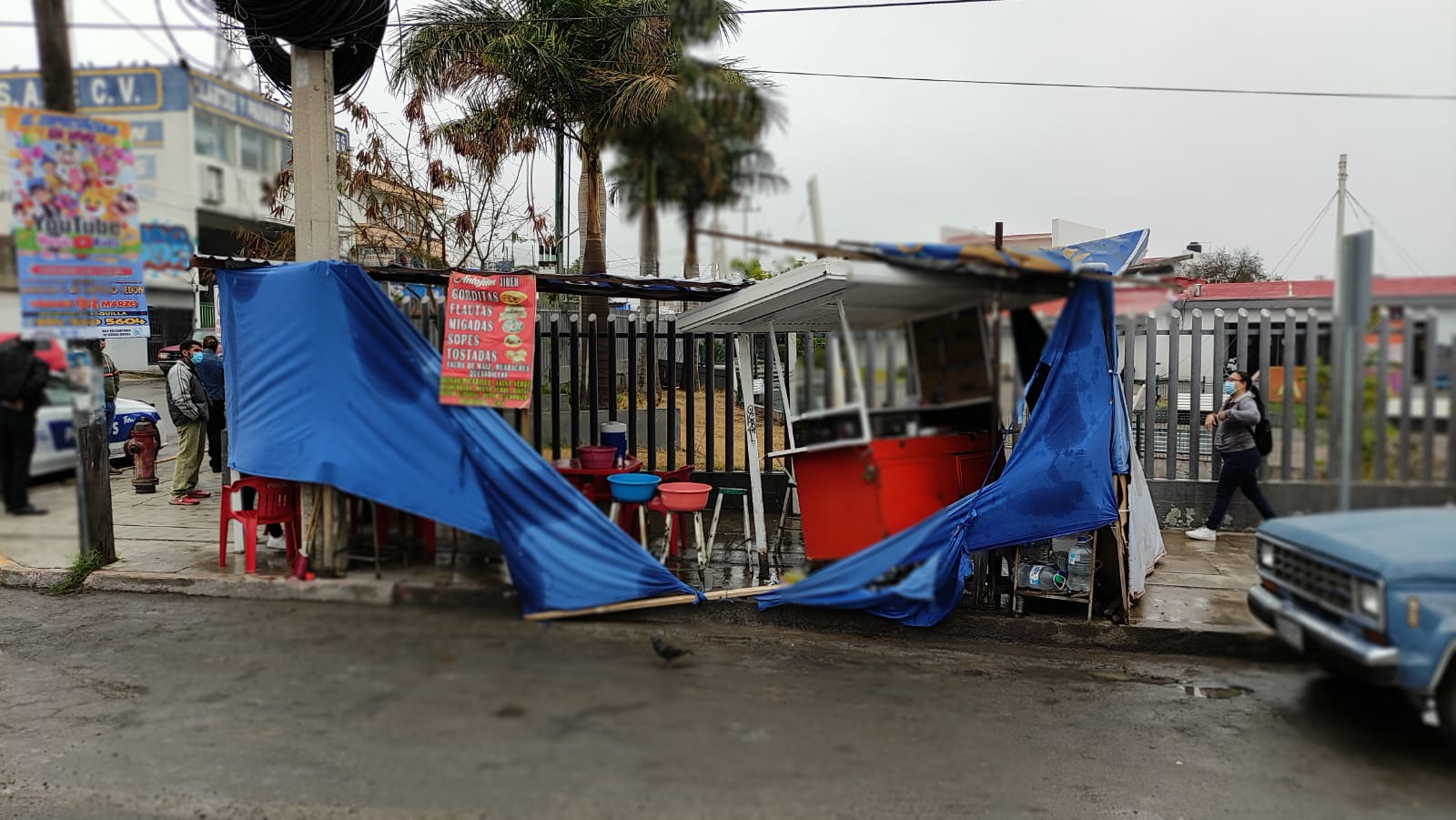 Presuntamente a consecuencia de una falla mecánica el camión repentinamente se desplaza de reversa y se estrelló contra el techo de un carretón de antojitos mexicanos proyectándolo sobre la banqueta.