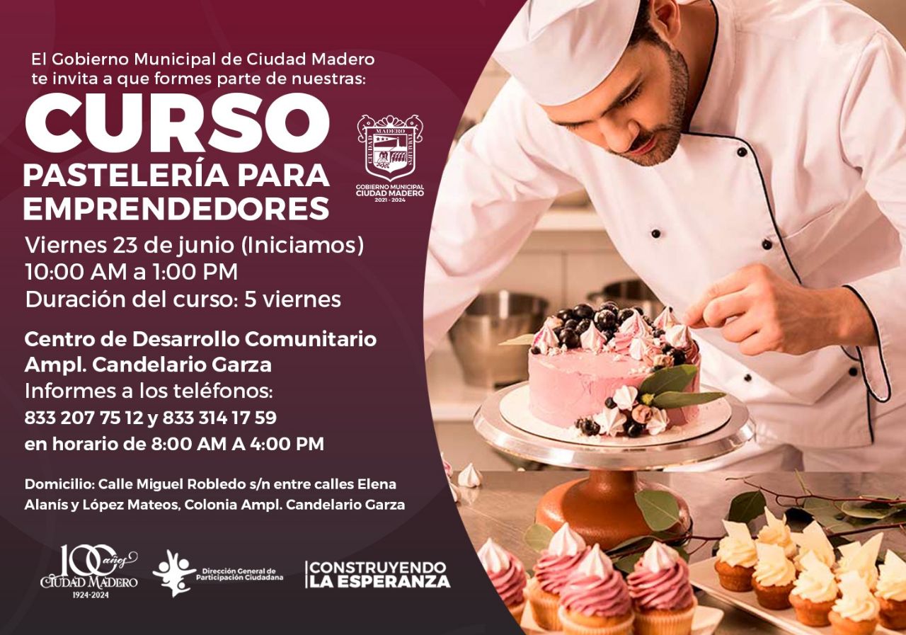CIUDAD MADERO, Tam.- Para continuar impulsando el autoempleo, el Gobierno de Ciudad Madero invita a los cursos de cocina, pastelería y repostería que darán inicio próximamente en el Centro de Desarrollo Comunitario Ampliación Candelario Garza.