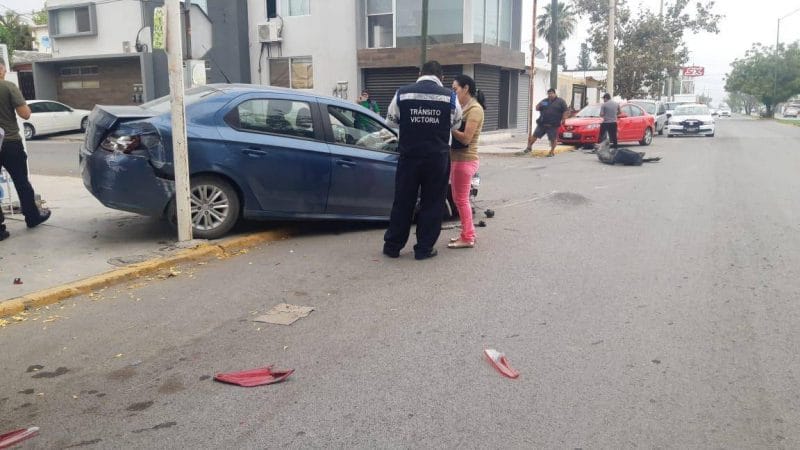 El accidente ocurrió la mañana de este martes cuando un automóvil Peugeot color azul circulaba por la calle Norberto Treviño Zapata en sentido de norte a sur.