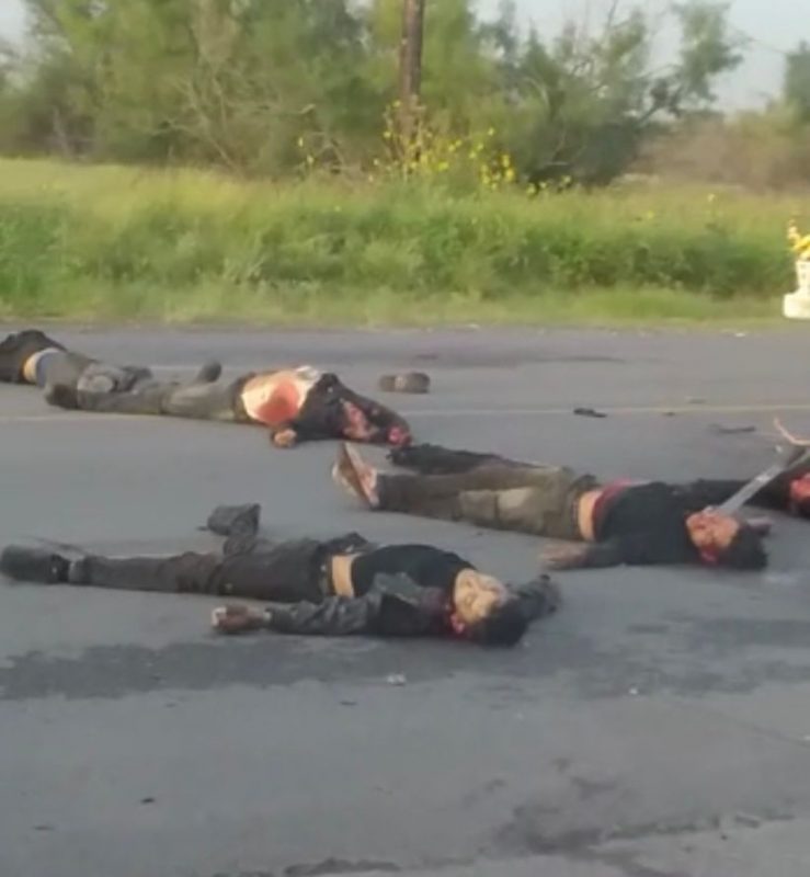 Durante la noche del lunes y madrugada de este martes, fueron reportadas balaceras, pero fue hasta esta mañana, que personas que circulaban a la altura del kilómetro 4 de la carretera Miguel Alemán-Mier, muy cerca del rastro municipal, que reportaron la presencia de cuerpos en la citada arteria.