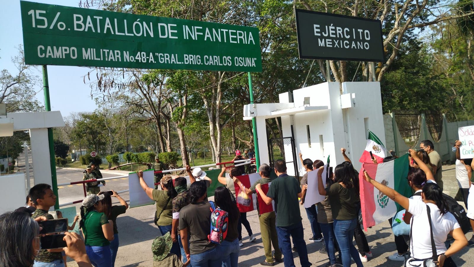 En Tampico, fueron cerca de 40 personas las que respaldaron al personal castrense que tienen su base en el 15 Batallón de Infantería en Tancol, portando cartulinas y banderas de México, entonando el Himno Nacional, y pidiendo al Presidente López Obrador, la liberación de los soldados detenidos por la muerte de cinco jóvenes en Nuevo Laredo.