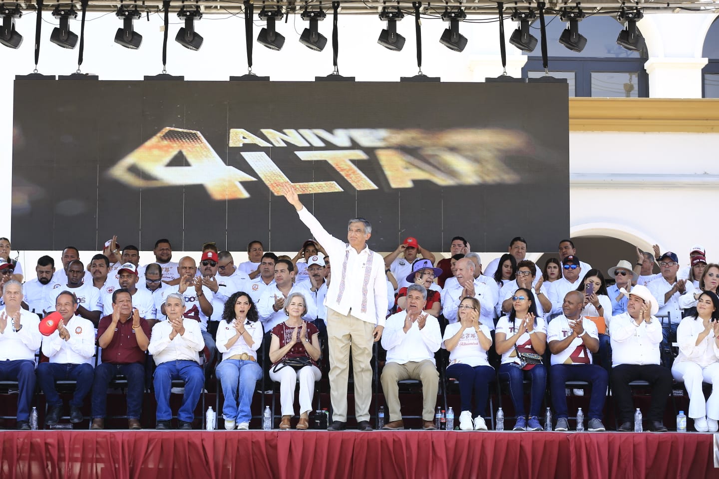 Antes de finalizar su discurso, el mandatario estatal dijo que tomó nota de las justas demandas expuestas por las y los trabajadores durante el desfile y aseguró que se van a atender con prontitud.