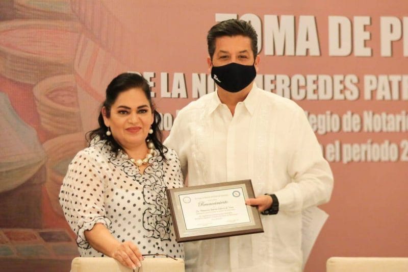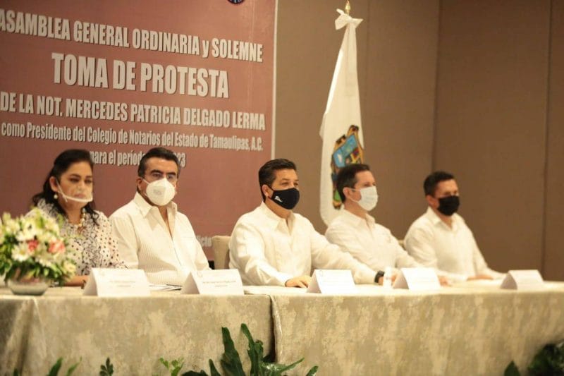 García Cabeza de Vaca, tomó protesta a la nueva presidenta del organismo, Mercedes Patricia Delgado Lerma, quien estará al frente durante el periodo 2021-2023, esto al celebrarse la Asamblea General Ordinaria del Colegio de Notarios del Estado de Tamaulipas.