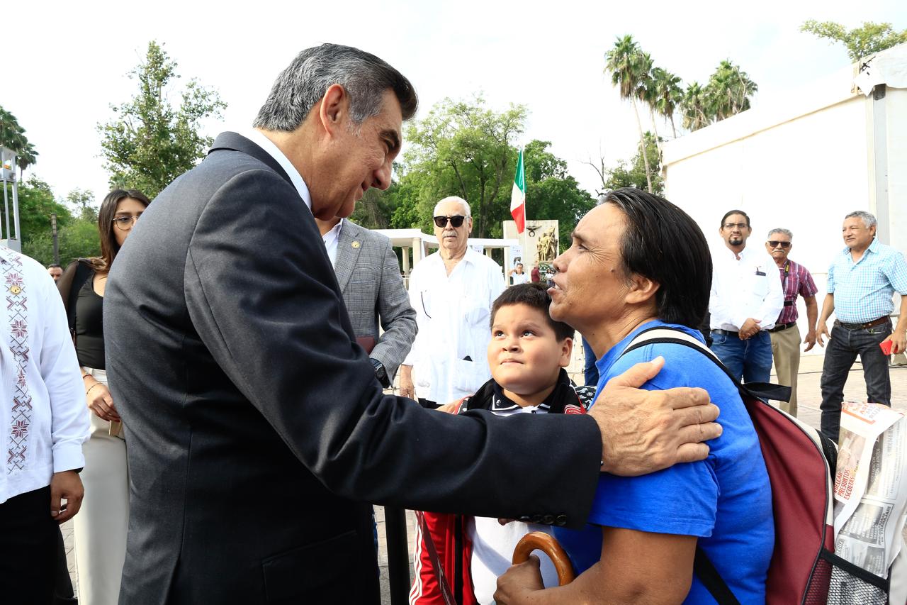 “Tamaulipecos, sigamos creyendo en nuestro México, no perdamos de vista que podemos fortalecer nuestra nación al servicio de las mejores causas de la humanidad, a nuestro modo, con nuestra esencia, un humanismo a la mexicana, un ejemplo de paz, amor al pueblo, a nuestra patria; debemos fortalecer la paz y la seguridad, pasar ya de la práctica a la ayuda de todos, con educación a nuestros hijos, fortaleciendo la base de la sociedad, la familia, con la denuncia ciudadana, como paso a la impartición de justicia, con el castigo al agravio, sin impunidad, sin corrupción, con amor a México”, expresó.