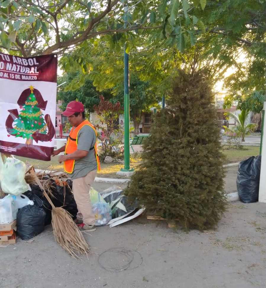 CIUDAD MADERO, Tam.- Un promedio de 500 pinos naturales han sido recolectados en distintos puntos estratégicos que habilitó el Gobierno de Ciudad Madero, como parte del programa “Recicla tu árbol navideño natural”, cuyo propósito es darle un destino final apropiado y mantener las calles libres de acumulamiento.