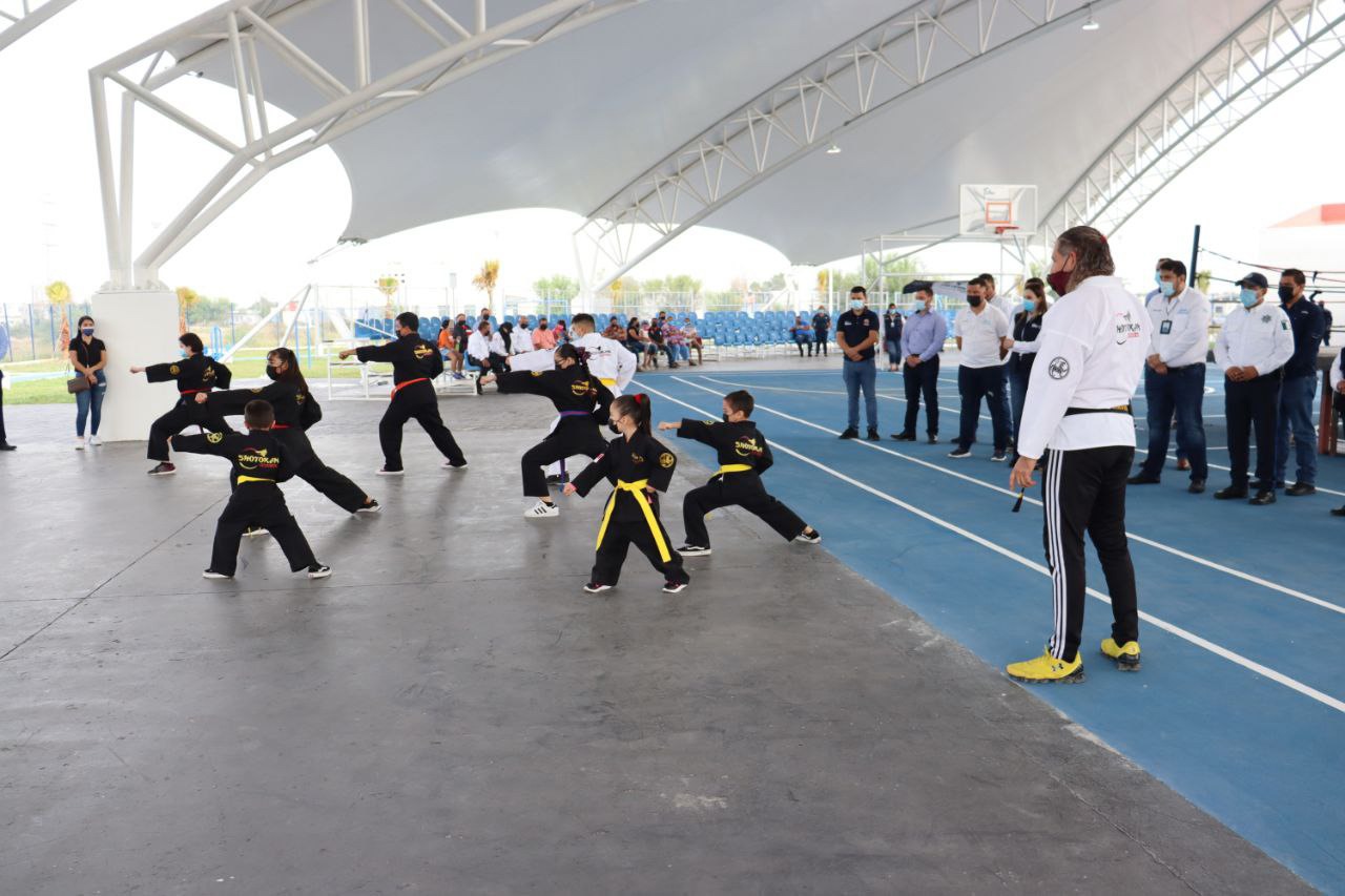 Entre las actividades, jovenes deportistas de Miguel Alemán llevaron a cabo demostraciones en las disciplina de karate, box y lucha libre.