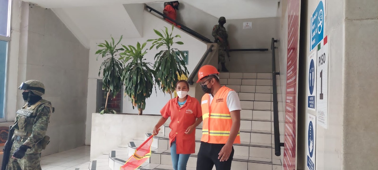 En punto de las 11:00 de la mañana se llevó a cabo el simulacro de incendio en el edificio que alberga oficinas federales y bastaron 15 minutos para desalojar a 267 personas entre empleados y visitantes.