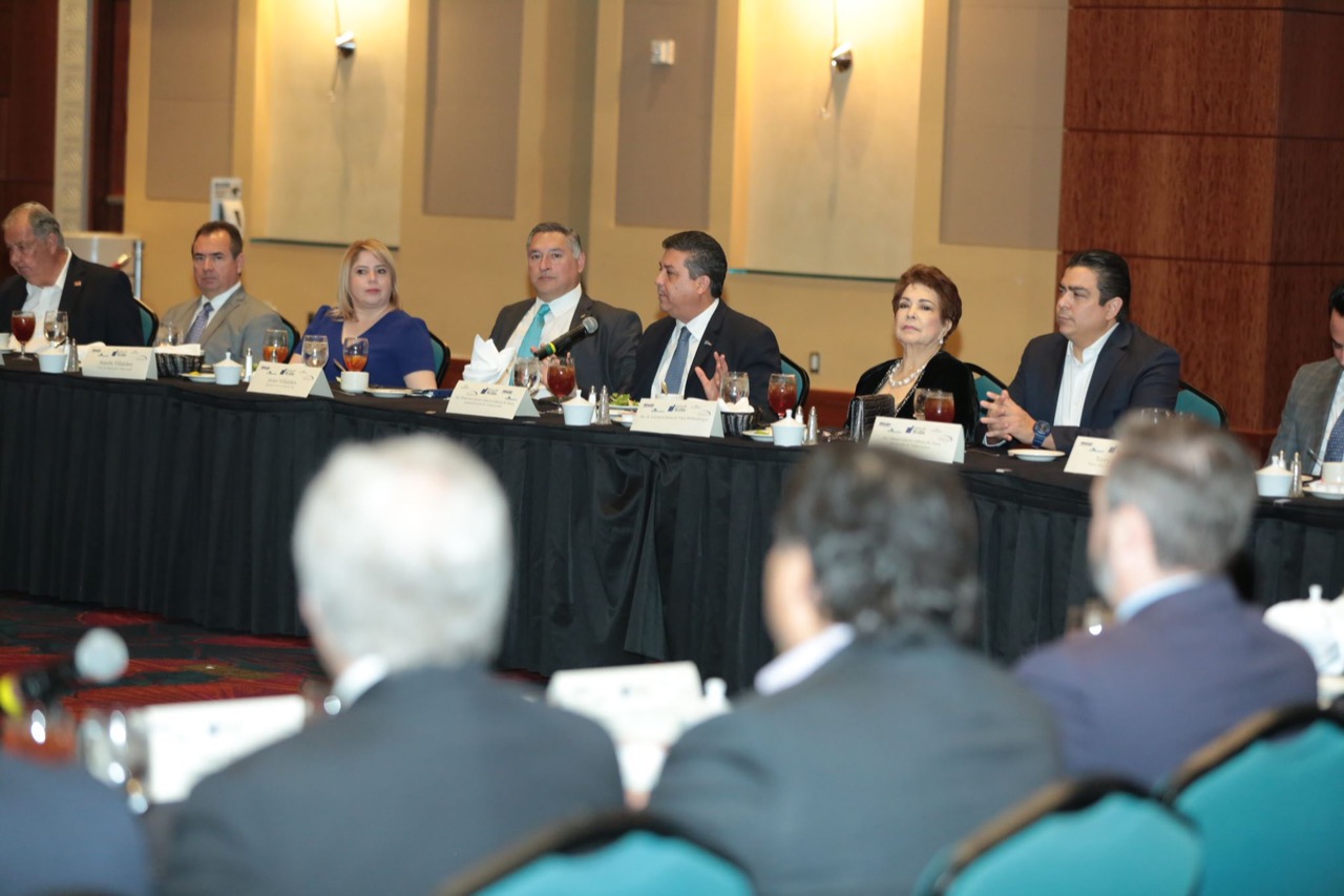 “¿Alguna vez detuvimos el transporte, el comercio en nuestra frontera?, la respuesta es no, gracias a nuestros socios y el Gobierno de Tamaulipas”, espresó Villalobos ante alcaldes, legisladores y empresarios.