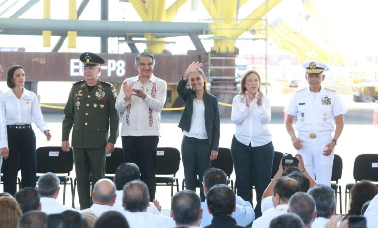 Durante el evento, realizado en el Patio Industrial, el mandatario tamaulipeco acompañó a la titular del Ejecutivo federal en un acto emblemático para la soberanía energética del país.