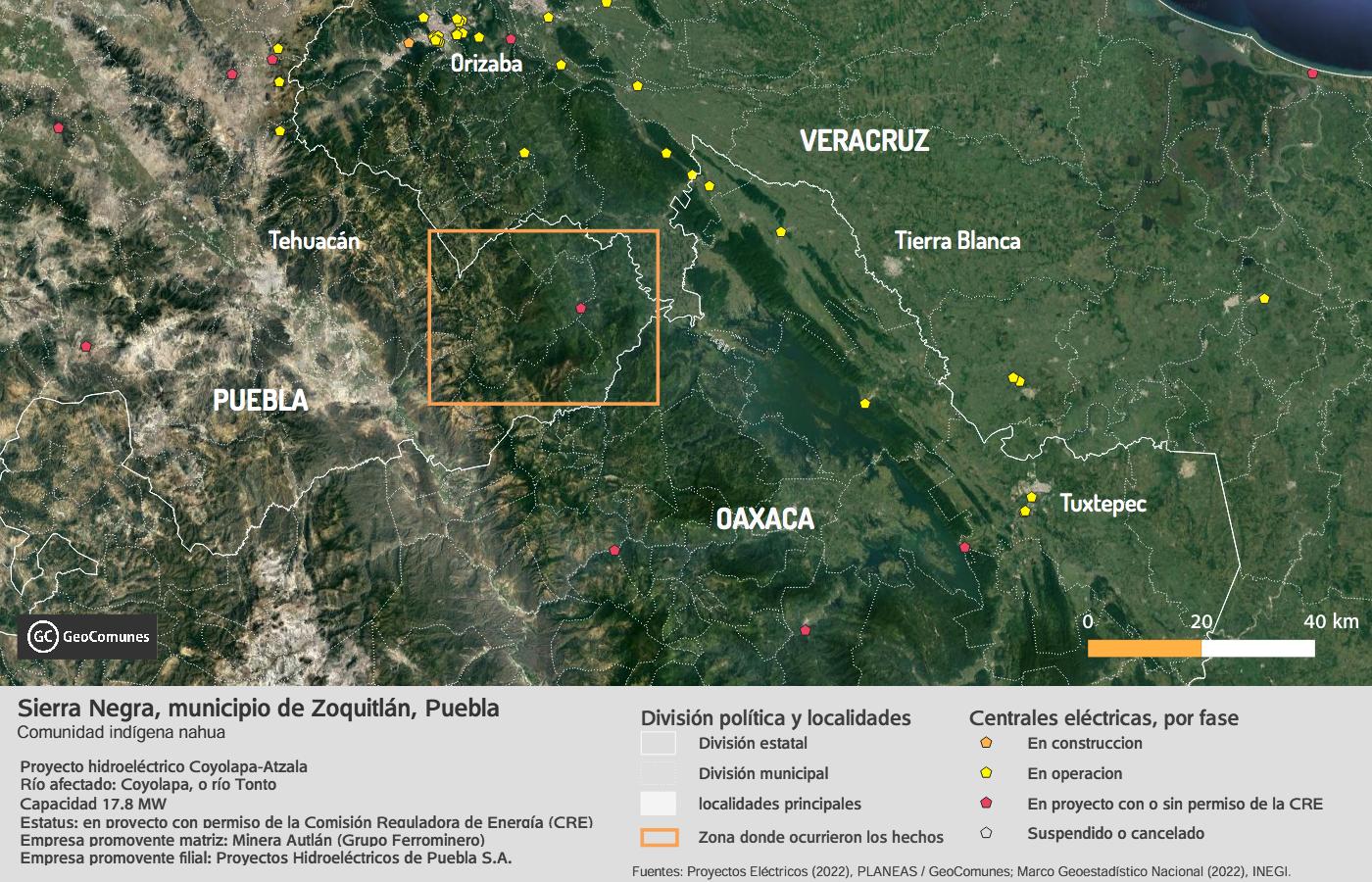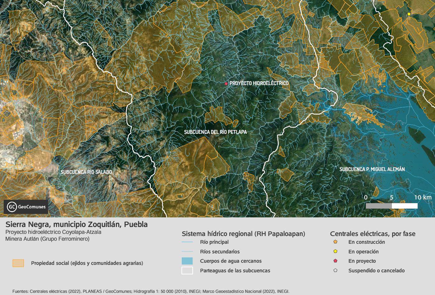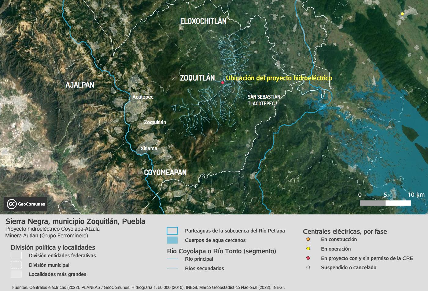 Proyectos Hidroeléctricos de Puebla es la empresa que presentó la Manifestación de Impacto Ambiental (MIA) para el proyecto en la Sierra Negra. Esta compañía, que pertenece al Grupo Ferrominero-Minera Autlán, sigue teniendo a su nombre la concesión que la Comisión Nacional del Agua (Conagua) le otorgó en 2017 para utilizar poco más de 369 millones de metros cúbicos de agua del río Coyolapa.