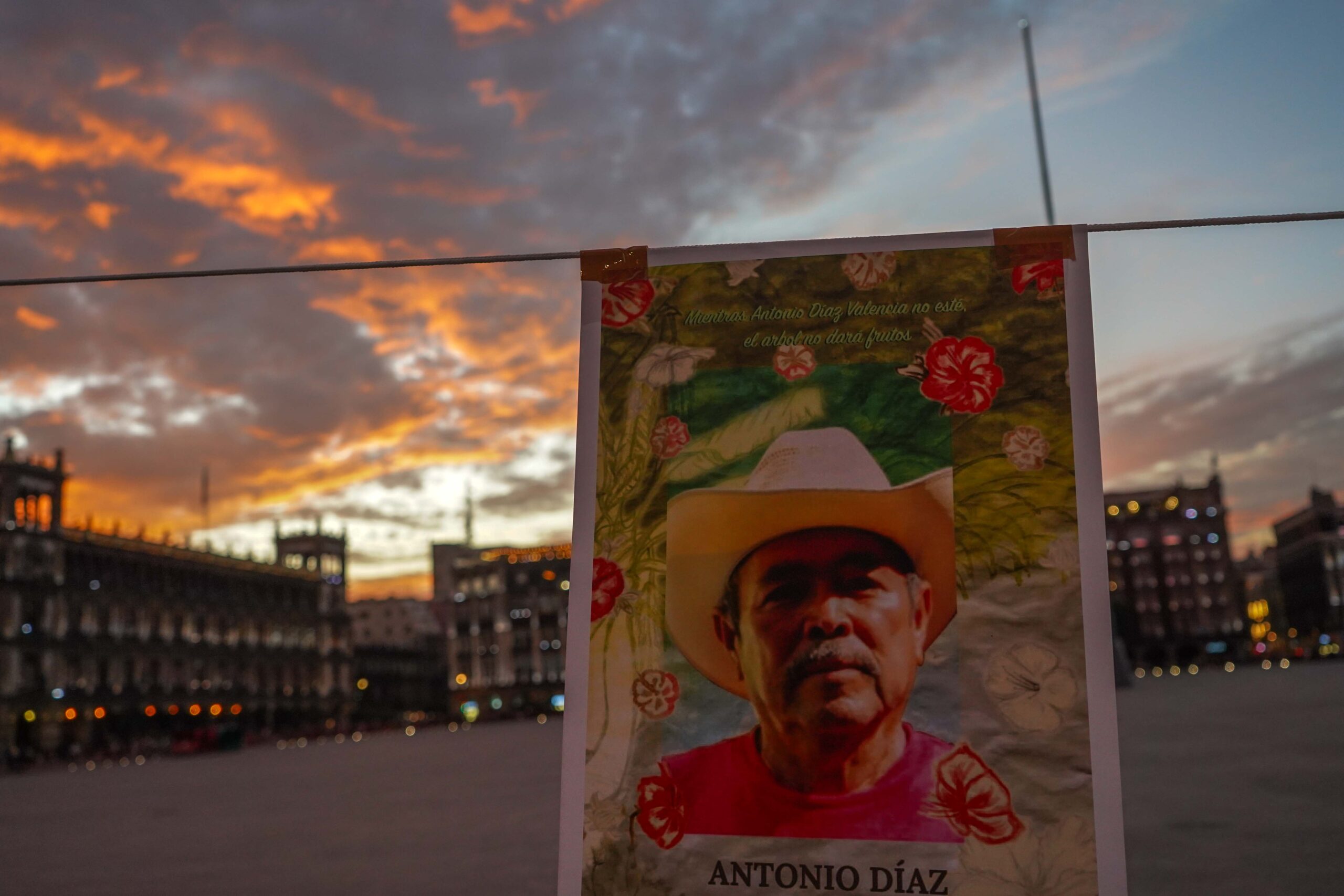 El 14 de enero, un día antes de cumplirse el aniversario de la desaparición de Antonio Díaz Valencia y Ricardo Lagunes Gasca, sus familiares realizaron una protesta en el Zócalo. (Ulises Martínez/ObturadorMX)