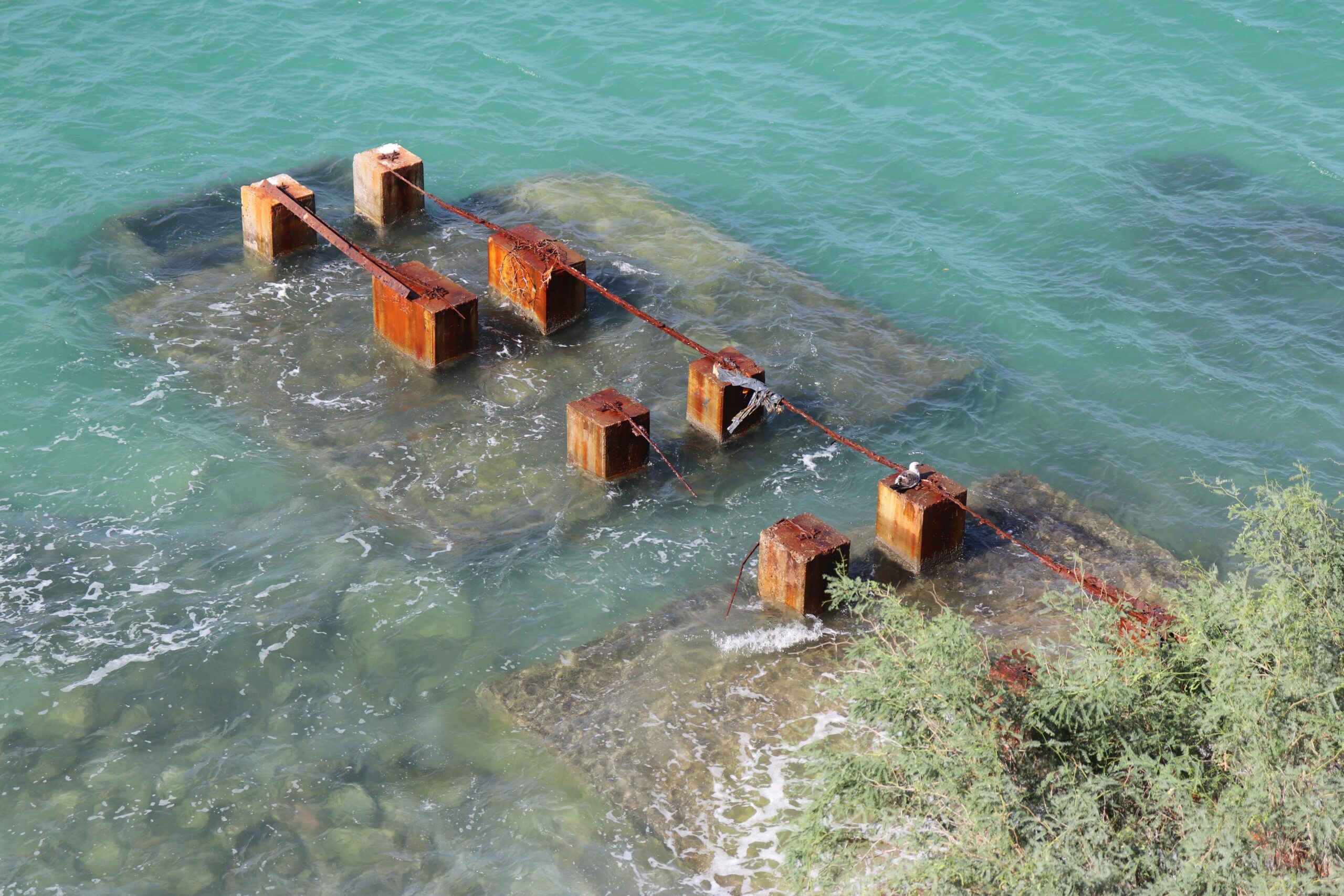 Si bien los toboganes fueron desmantelados y retirados de El Coromuel, la base de los mismos aún se encuentran en la playa, se observan oxidados y representan un peligro para quienes asisten a realizar actividades acuáticas.